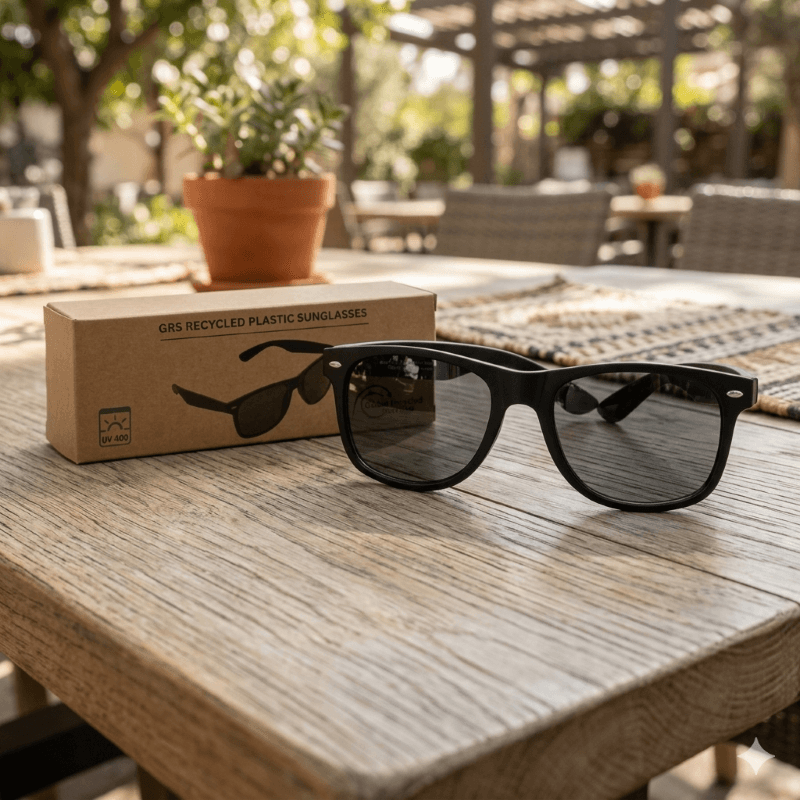 Kvalitní sluneční brýle vyrobené ze 100% recyklovaného PC plastu s GRS certifikací. Zatmavená akrylová sklíčka s ochranou UV 400 a filtrem CAT 3 poskytují spolehlivou ochranu při silném slunci. Brýle jsou dodávány v kraftové dárkové krabičce, ideální i jako stylový a udržitelný dárek.
